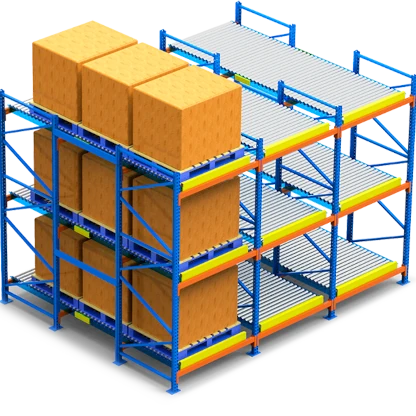 - Descripción: Sistema de almacenamiento que utiliza rodillos para facilitar el movimiento de los pallets.